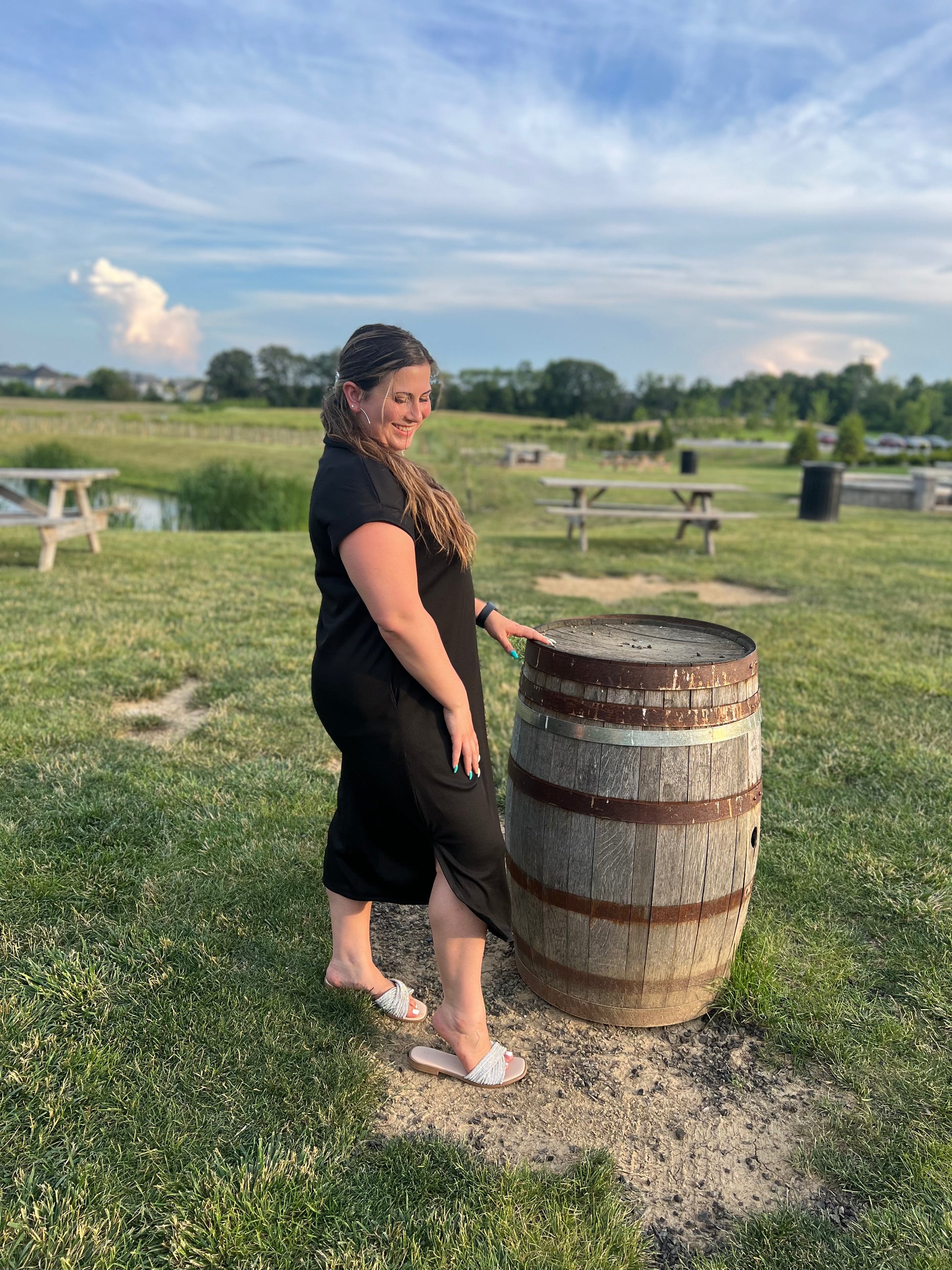 Stay comfy and chic in our Perfectly Paired Black Lounge Maxi Dress! With short sleeves and a collared neck line, this dress is perfect for any occasion. Side slits and pockets add an extra touch of convenience and style. Made in the USA for quality you can trust.